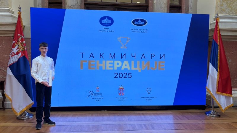 У Народној скупштини Републике Србије је 24. 12.2025. године, организована је додела награде Такмичари генерације. Наиме, Влада Републике Србије и Министарство просвете су на овој свечаности наградили ученике који су остварили изузетне резултате на републичким и међународним такмичењима и завредили да буду промовисани на платформи Такмичари генерације. Међу њима је ученик наше школе Виктор Сечевић, у класи наставнице клавира Тање Рашковић, који је током свог школовања освојио бројна признања и својим радом и преданошћу заслужио и ову награду.